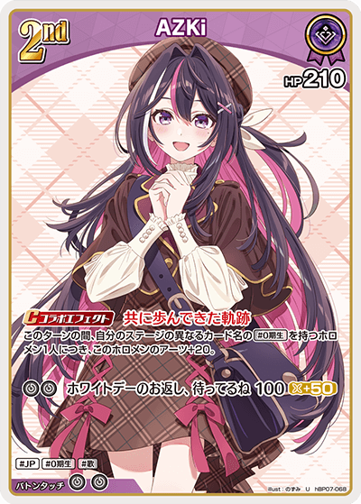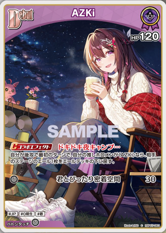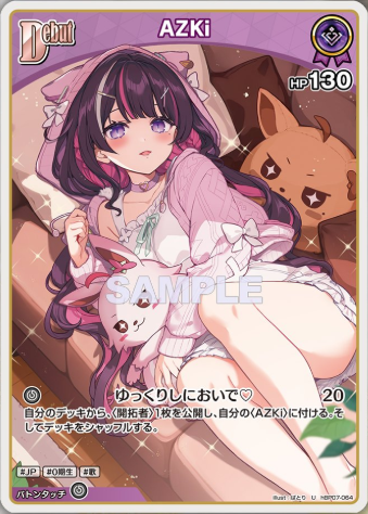 ![]() DebutAZKi | 役割:妨害 ・後手1T専用コラボエフェクト持ち ・相手のエールを1枚エールデッキに戻せる ┗エール加速や2ndが2エールアーツ持ちじゃないと先攻後攻が入れ替わるほどの強さを持つ |