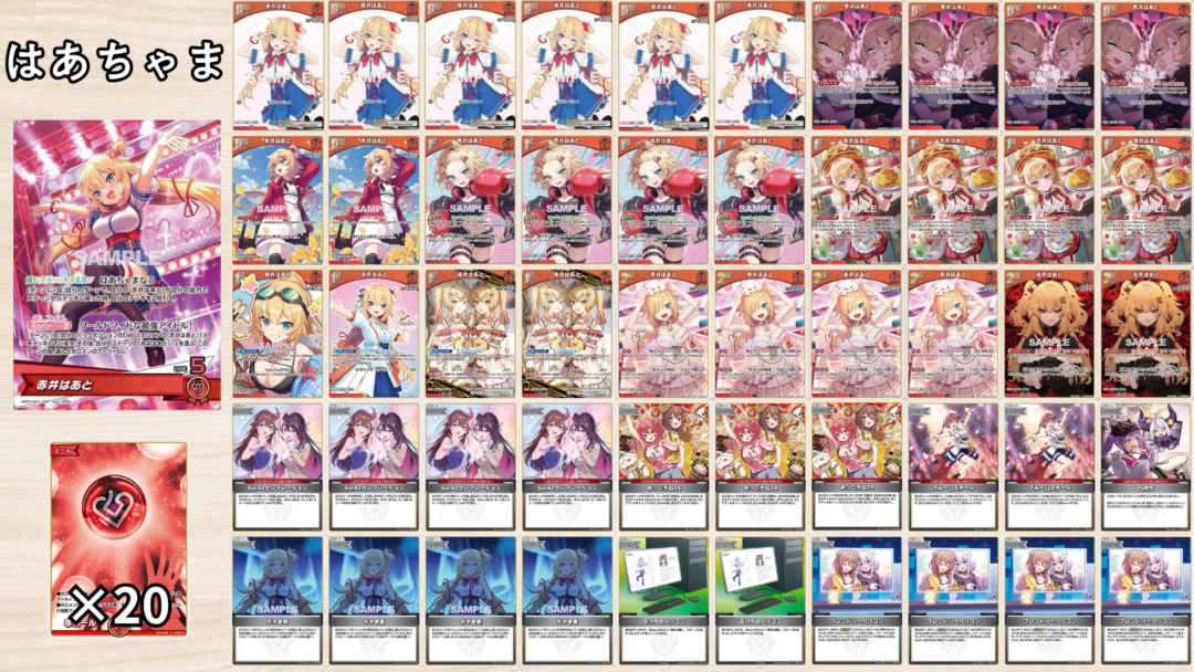 赤井はあと単体で組んだ、安定感と使いやすさ、そして何より、ステージのはあちゃまをデッキに戻す代わりに強力な効果を持っているのが特徴のデッキです!