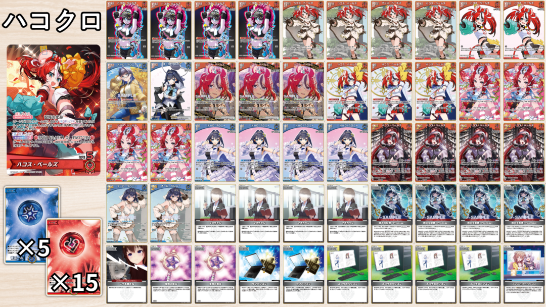 ![]() 1st ハコス | 役割:打点補助 ・序盤で火力を出したいときや、2ndの出せる打点が200点なため、それ以上のHPのホロメンをダウンさせるときの打点補助として使う。 | |