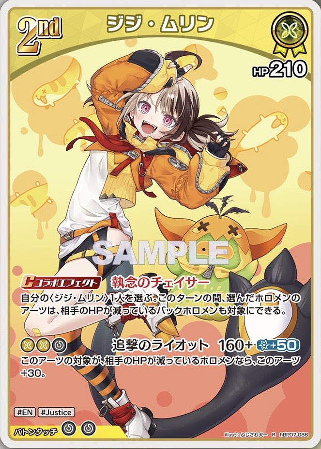 ・SPスキル -3:デッキから2ndのジジ2枚をステージに出し、アーカイブのエールを自分のホロメン全員に1枚ずつ送る