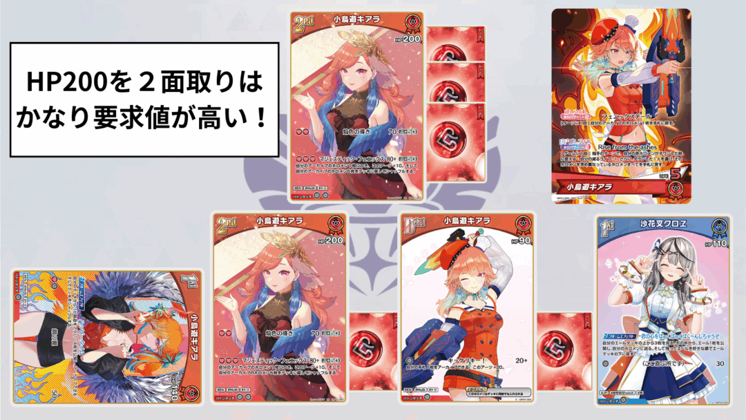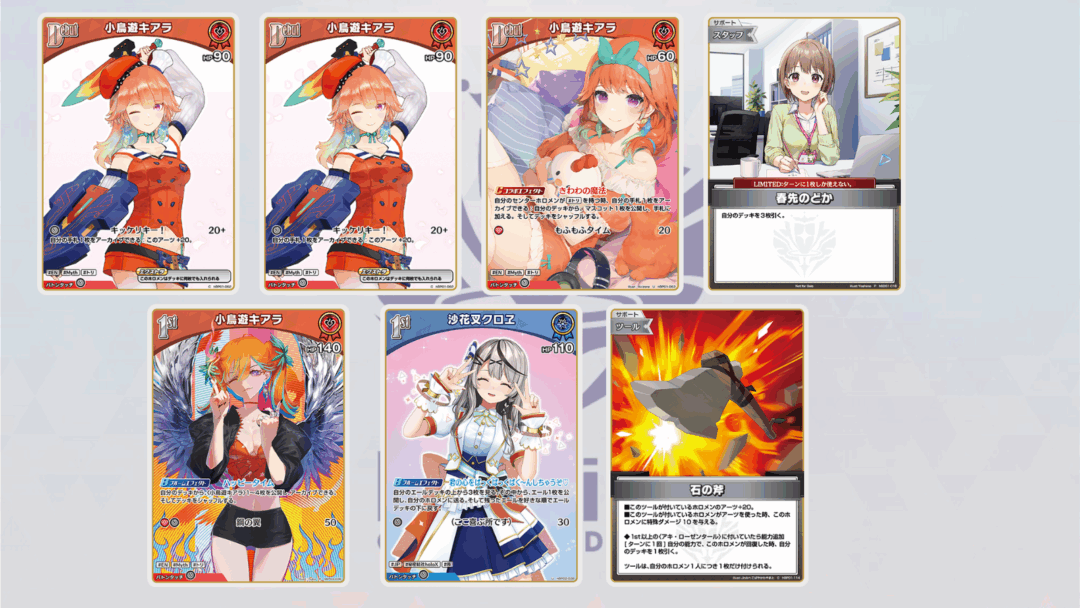どちらも2面取りのリスクがあるため相手の動きを制限できるデッキであり、エールやコラボなどのキアラの動きを制限という点で強力な、Tier2 に属するデッキです。