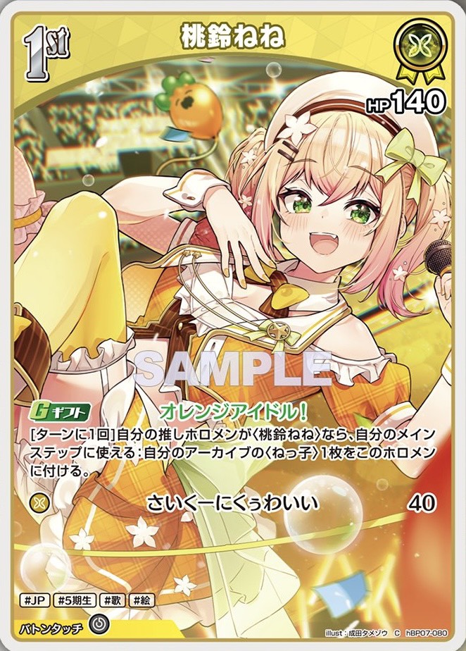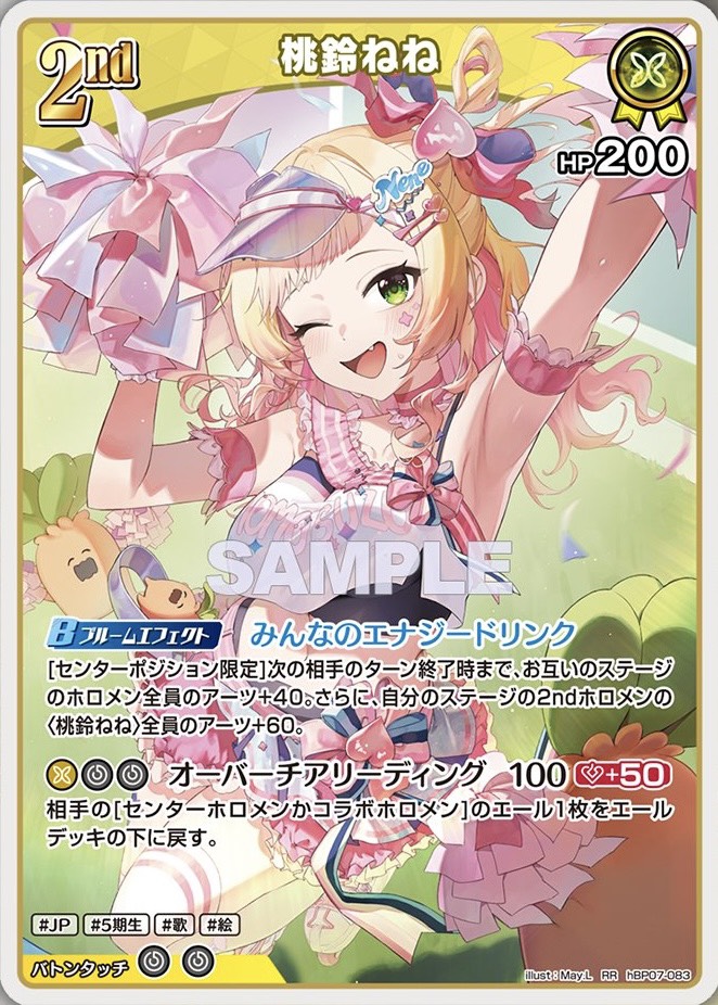 ・センターでブルームすると、ステージの全てのホロメンのアーツを相手ターンの終わりまで+40!自分の2ndのねねちはさらに+60!