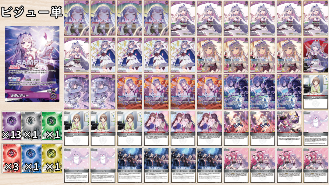 | ・ルイを採用して少し後ろ寄りにした構築 ・1stルイのブルーム時に手札の入れ替えが可能 ・2ndルイでアーカイブから好きなholoX2枚回収が優秀 |