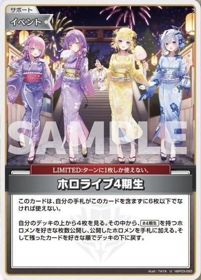 他にも2つ買うと、4期生のサマーdebutが全て4枚ずつ入手できるので、4期生デッキを組みたい方はぜひ購入を検討してみてください!